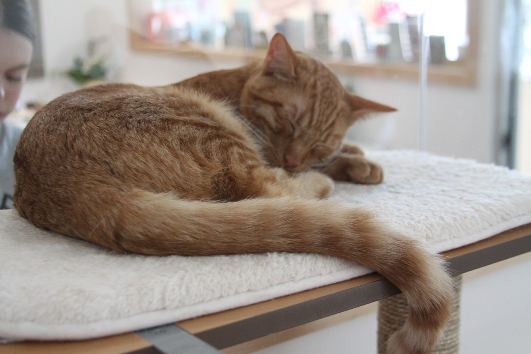 At San Francisco’s KitTea Cat Cafe, I had the opurrtunity to hang with some of the purrmanent residents as well as adoptable shelter cats. Tiger, a fluffy ginger with impressive cheek fur, was my guide, showing me the ins and outs – litter-ally – of the cat cafe, including a ramp that leads up to an open window.